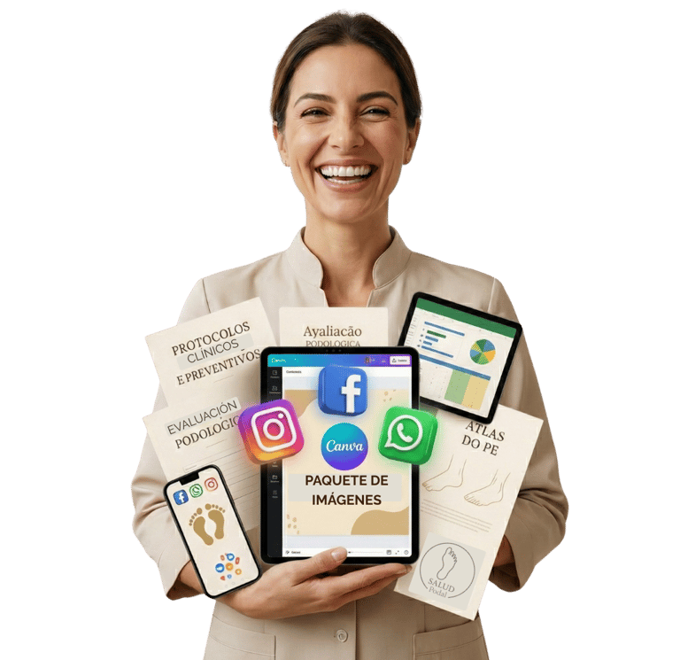 "Eleva la calidad y la credibilidad de tu consultorio con protocolos, fichas y materiales visuales creados especialmente para podólogos."